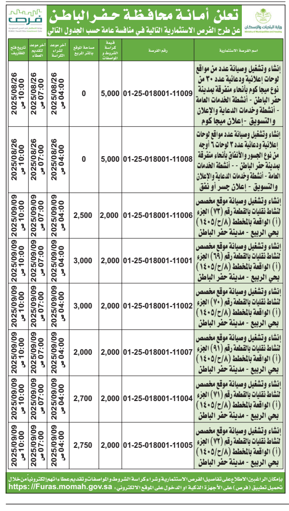 منافسة عامة- إنشاء وتشغيل وصيانة عدد من موقع لوحات إعلانية- أمانة محافظة حفر الباطن