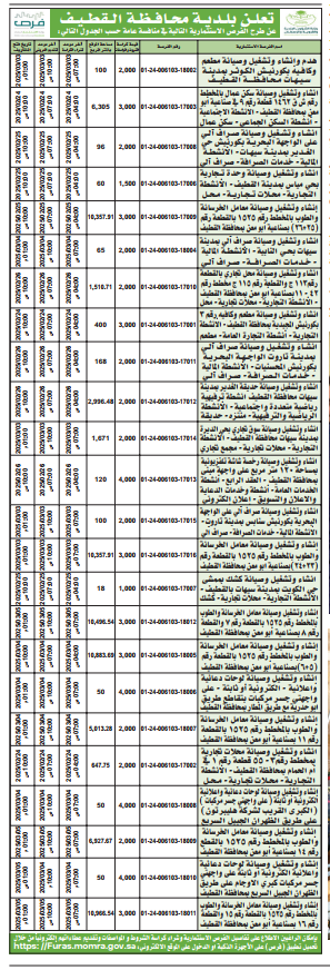 *طرح الفرص الاستثمارية التالية في منافسة عامة حسب الجدول التالي