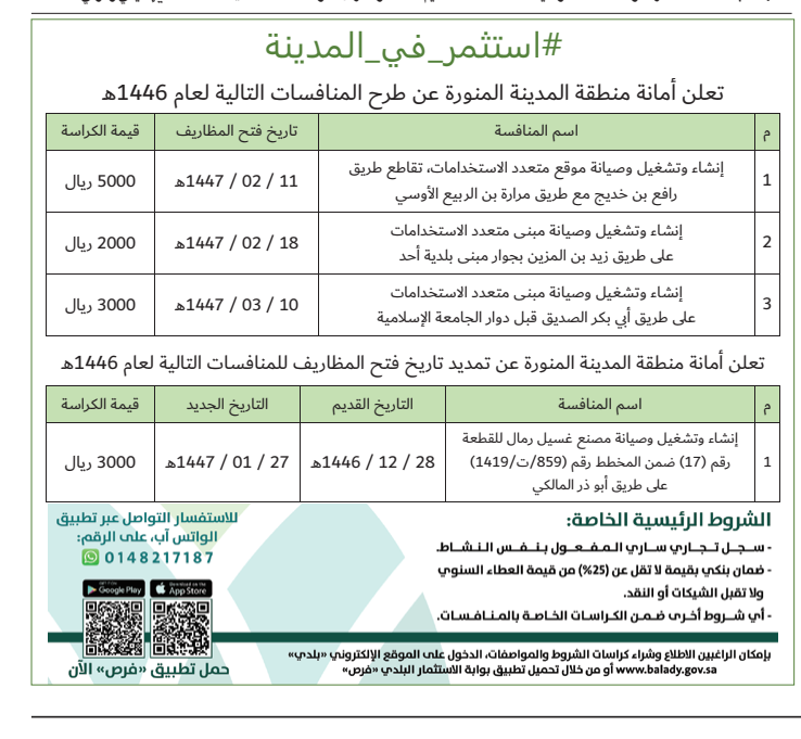 منافسة- إنشاء وتشغيل وصيانة موقع متعدد الاستخدامات- أمانة منطقة المدينة المنورة