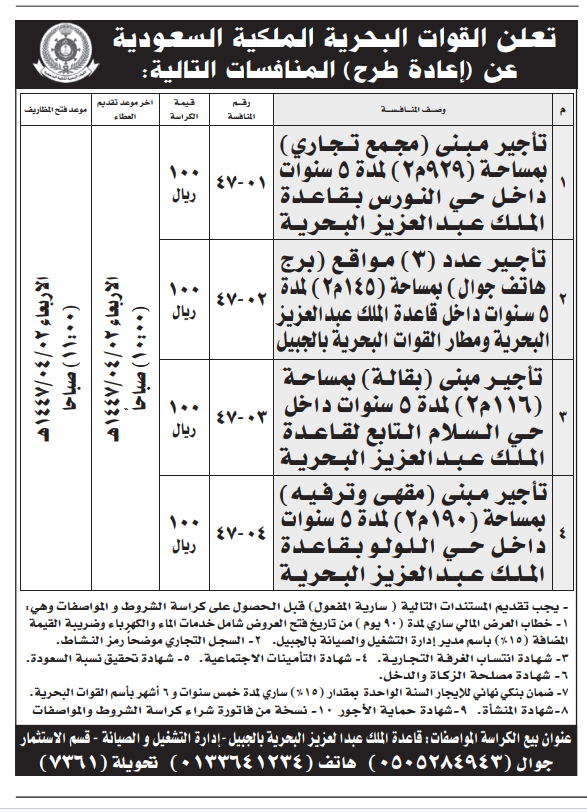 منافسة- تأجير مبنى مجمع تجاري- القوات البحرية الملكية السعودية