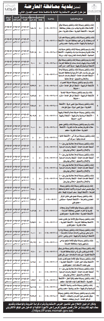 *طرح الفرص الاستثمارية التالية في منافسة عامة حسب الجدول التالي