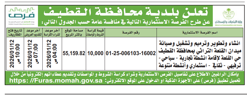 تعلن بلدية محافظة القطيف عن