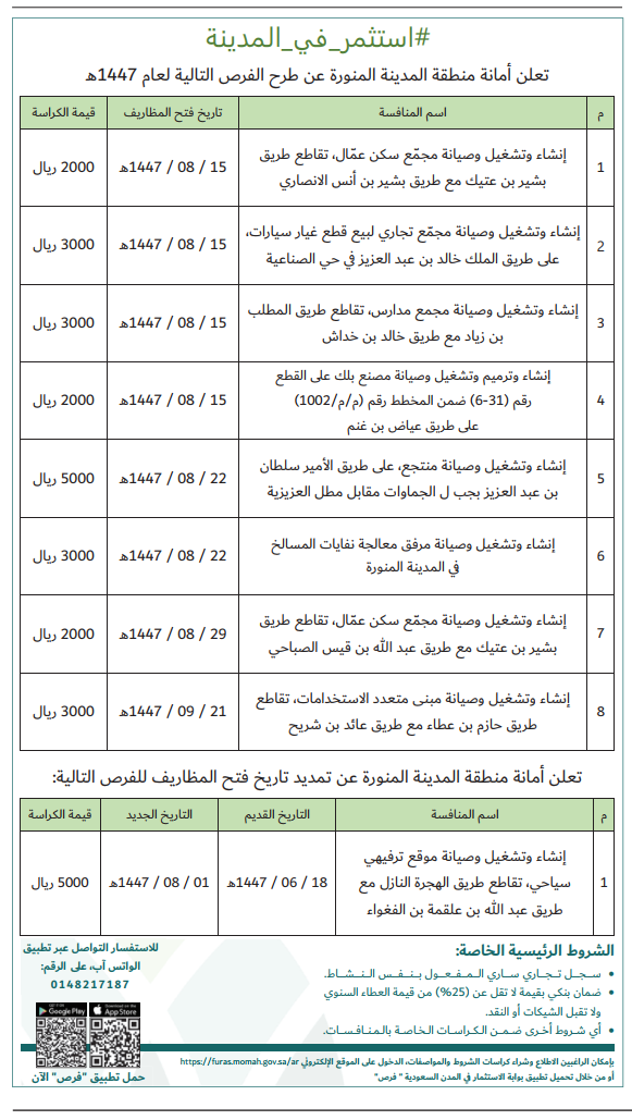 تعلن أمانة منطقة المدينة المنورة عن