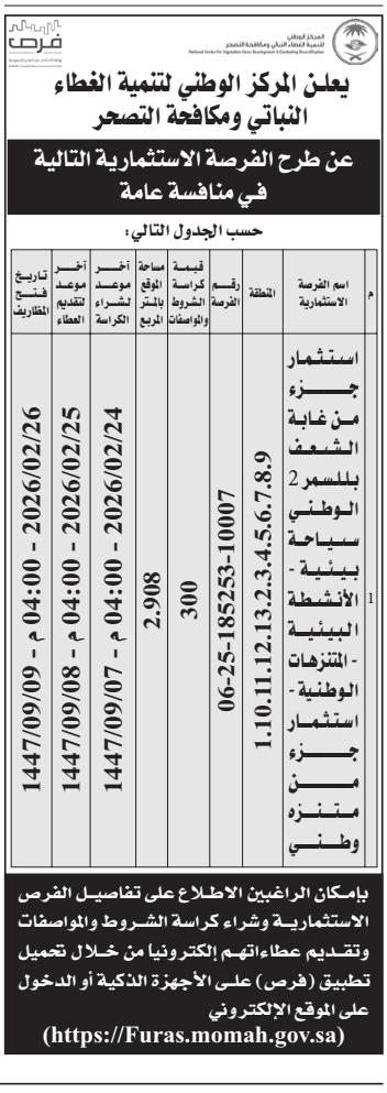 *طرج الفرصة الاستثمارية التالية في منافسة عامة
