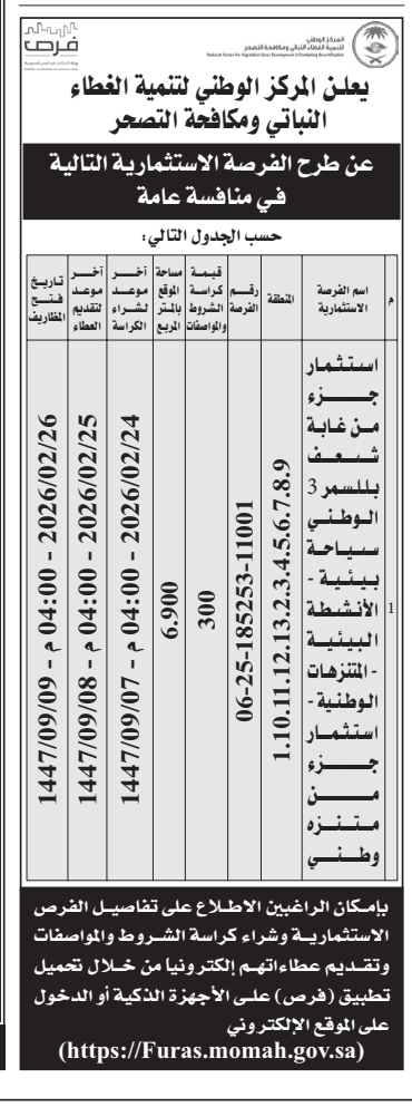 *طرح الفرصة الاسثمارية التالية
